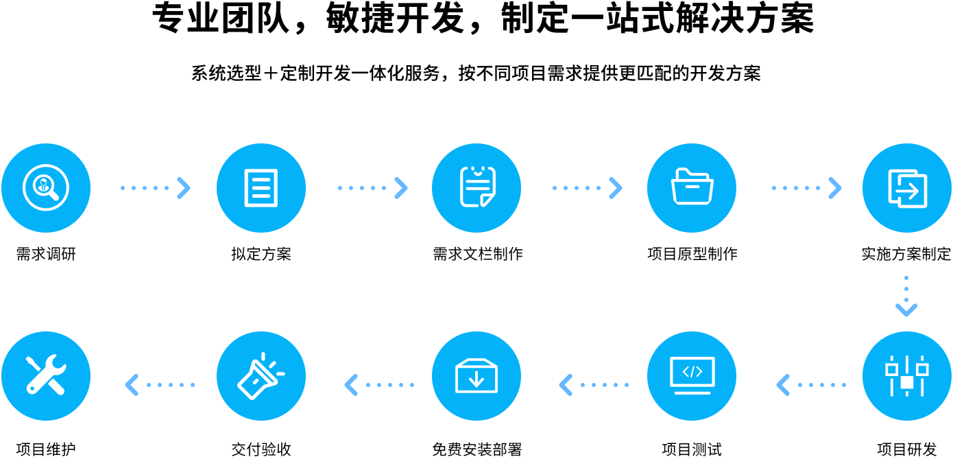 基于数年的大量客户个性化项目需求和开发经验,贴近客户个性化需求,服务周祥。拥有成熟的全流程质量管理体系,实时监督项目进程,多维度保障项目质量和项目进度。
